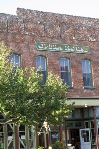 The red brick building is the historic Opera House, where the "Palms Playhouse" puts on concerts, etc.